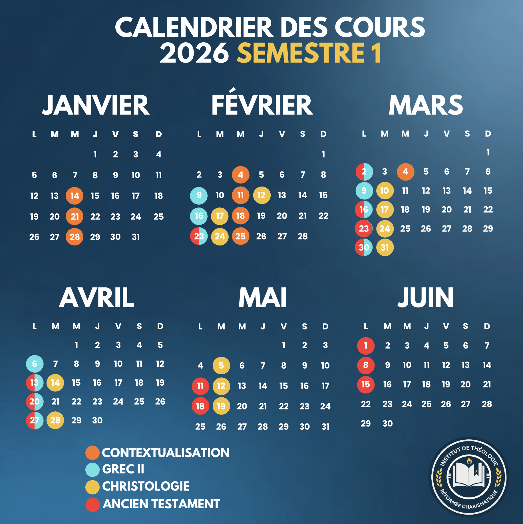 L’approche combine analyse textuelle, perspective historique et réflexion théologique, afin que les étudiants puissent lire l’Ancien Testament de manière informée, critique et pertinente pour la foi et la vie contemporaine. (compter environ 100 heures de travail).
